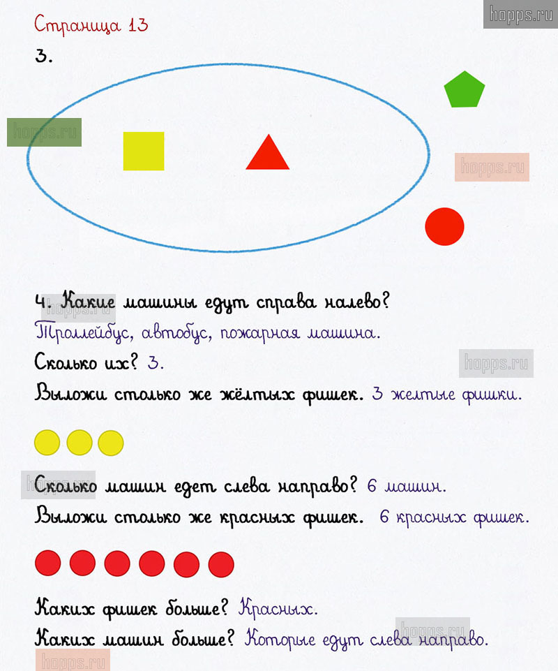 Подробные ответы к заданиям на 13 странице 1 части учебника по математике авторов В. Н. Рудницкая, Е. Э. Кочурова, О. А. Рыдзе для учащихся 1 класса. Урок 5. Сравниваем.