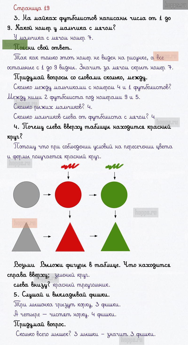 Подробные ответы к заданиям на 19 странице 1 части учебника по математике авторов В. Н. Рудницкая, Е. Э. Кочурова, О. А. Рыдзе для учащихся 1 класса. Урок 7. Работаем с числами от 6 до 9.