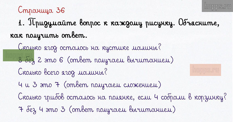 Подробные ответы к заданиям на 36 странице 1 части учебника по математике авторов В. Н. Рудницкая, Е. Э. Кочурова, О. А. Рыдзе для учащихся 1 класса. Урок 15. Готовимся решать задачи.