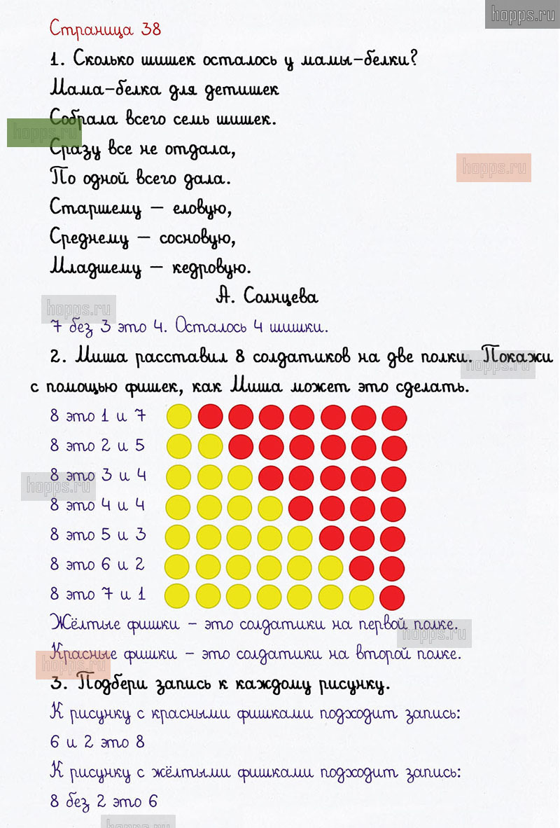 Подробные ответы к заданиям на 38 странице 1 части учебника по математике авторов В. Н. Рудницкая, Е. Э. Кочурова, О. А. Рыдзе для учащихся 1 класса. Урок 16. Готовимся решать задачи.