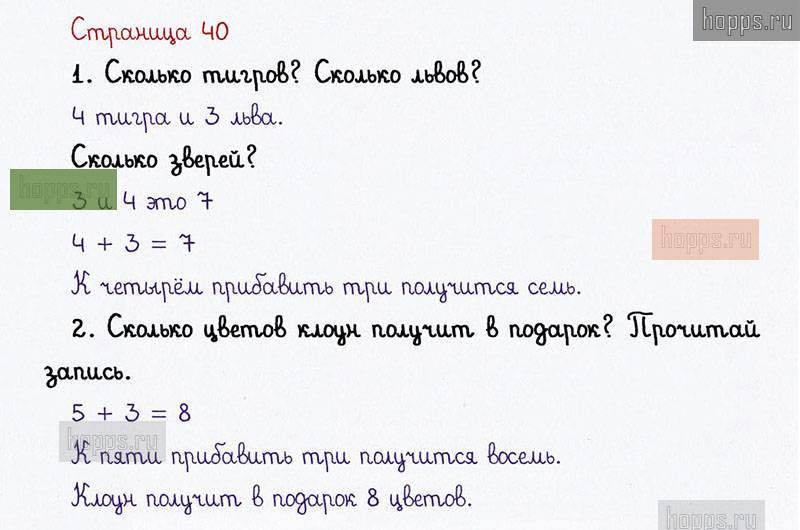Подробные ответы к заданиям на 40 странице 1 части учебника по математике авторов В. Н. Рудницкая, Е. Э. Кочурова, О. А. Рыдзе для учащихся 1 класса. Урок 17. Складываем числа.