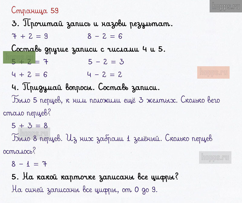Подробные ответы к заданиям на 59 странице 1 части учебника по математике авторов В. Н. Рудницкая, Е. Э. Кочурова, О. А. Рыдзе для учащихся 1 класса. Урок 24. Увеличиваем, уменьшаем число на 2.