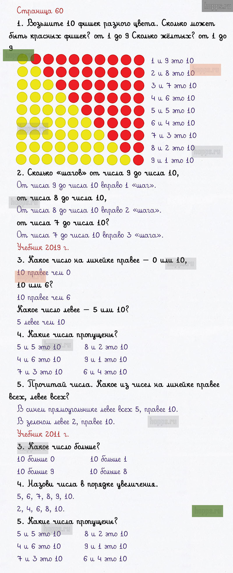 Подробные ответы к заданиям на 60 странице 1 части учебника по математике авторов В. Н. Рудницкая, Е. Э. Кочурова, О. А. Рыдзе для учащихся 1 класса. Урок 25. Работаем с числом 10.