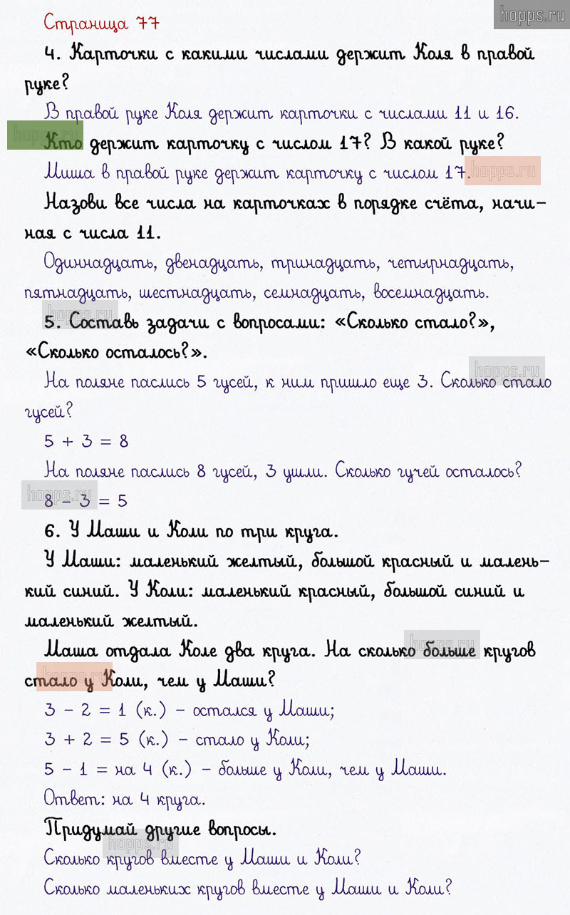 Подробные ответы к заданиям на 77 странице 1 части учебника по математике авторов В. Н. Рудницкая, Е. Э. Кочурова, О. А. Рыдзе для учащихся 1 класса. Урок 32. Работаем с числами от 11 до 20.