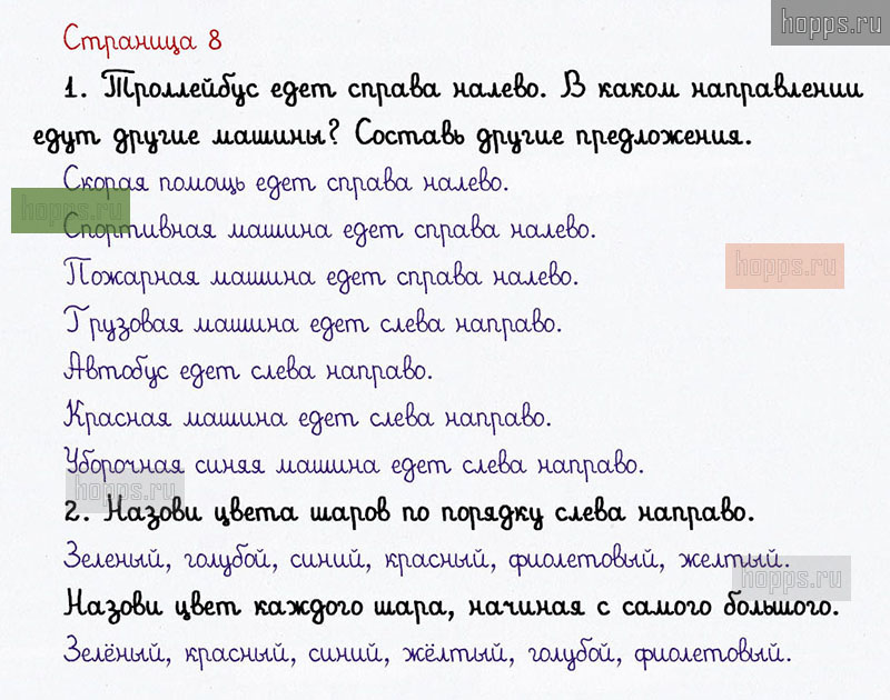 Подробные ответы к заданиям на 8 странице 1 части учебника по математике авторов В. Н. Рудницкая, Е. Э. Кочурова, О. А. Рыдзе для учащихся 1 класса. Урок 3. Называем по порядку. Слева направо. Справа налево.