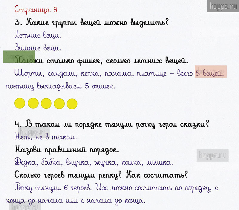 Подробные ответы к заданиям на 9 странице 1 части учебника по математике авторов В. Н. Рудницкая, Е. Э. Кочурова, О. А. Рыдзе для учащихся 1 класса. Урок 3. Называем по порядку. Слева направо. Справа налево.