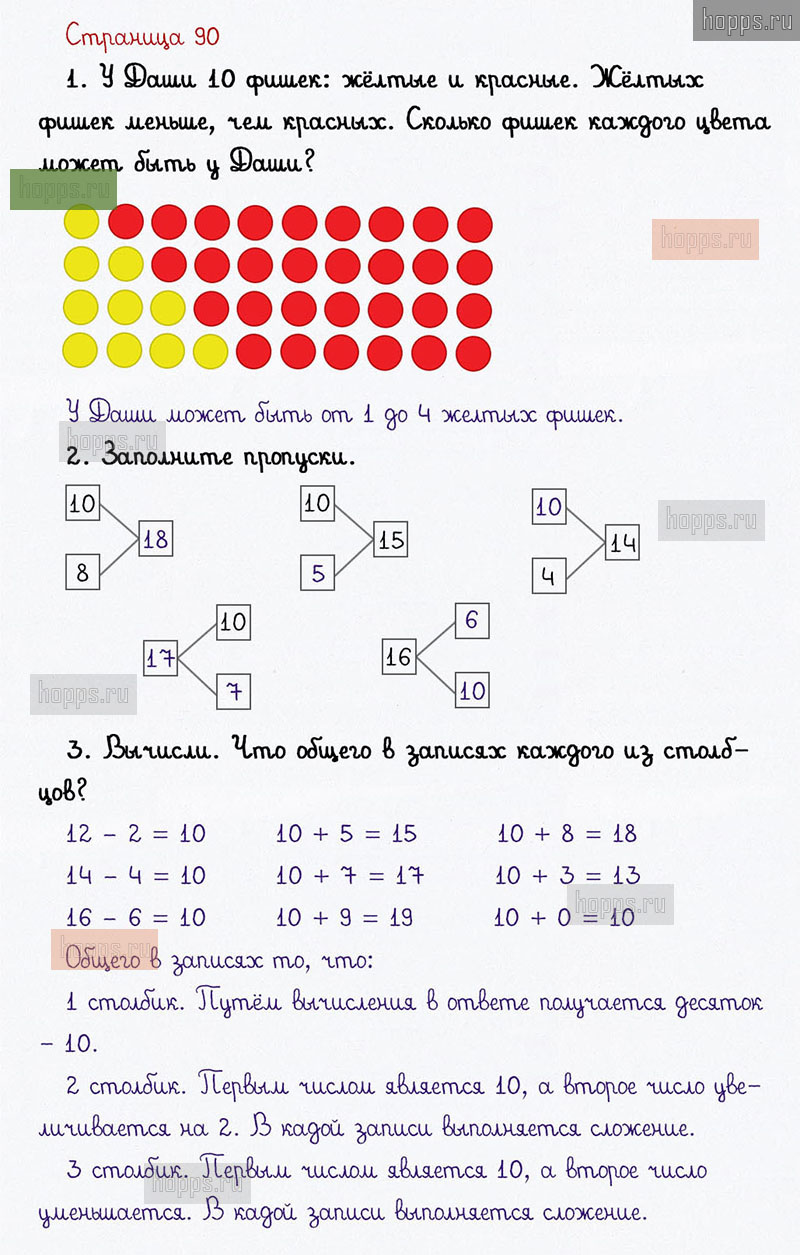 Подробные ответы к заданиям на 90 странице 1 части учебника по математике авторов В. Н. Рудницкая, Е. Э. Кочурова, О. А. Рыдзе для учащихся 1 класса. Урок 39. Работаем с числами от 1 до 20.