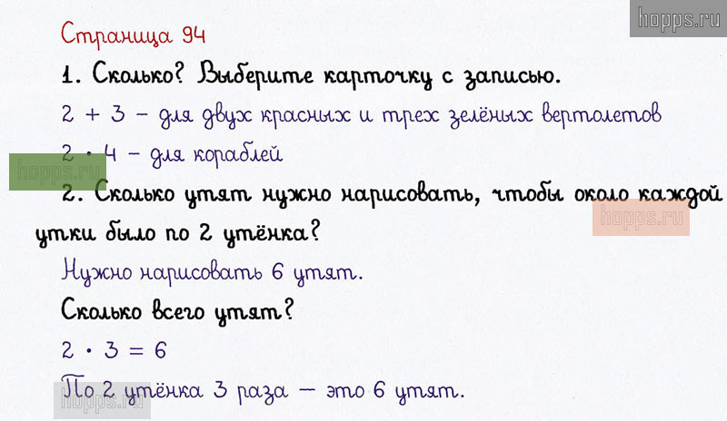 Подробные ответы к заданиям на 94 странице 1 части учебника по математике авторов В. Н. Рудницкая, Е. Э. Кочурова, О. А. Рыдзе для учащихся 1 класса. Урок 41. Умножаем числа.