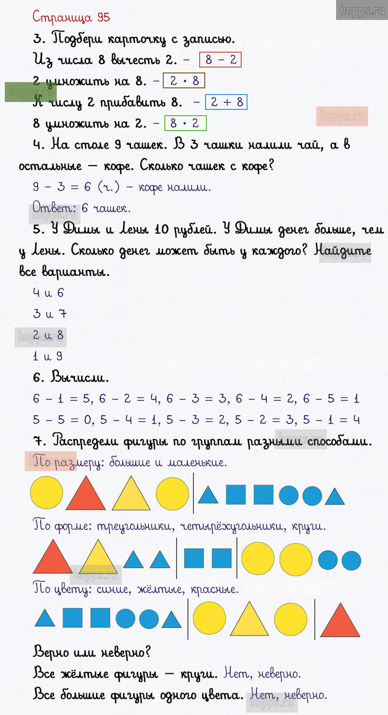 Подробные ответы к заданиям на 95 странице 1 части учебника по математике авторов В. Н. Рудницкая, Е. Э. Кочурова, О. А. Рыдзе для учащихся 1 класса. Урок 41. Умножаем числа.