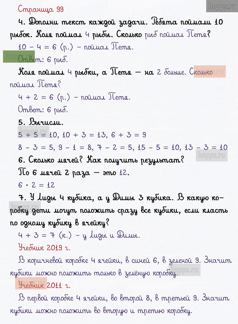 Подробные ответы к заданиям на 99 странице 1 части учебника по математике авторов В. Н. Рудницкая, Е. Э. Кочурова, О. А. Рыдзе для учащихся 1 класса. Урок 43. Решаем задачи.