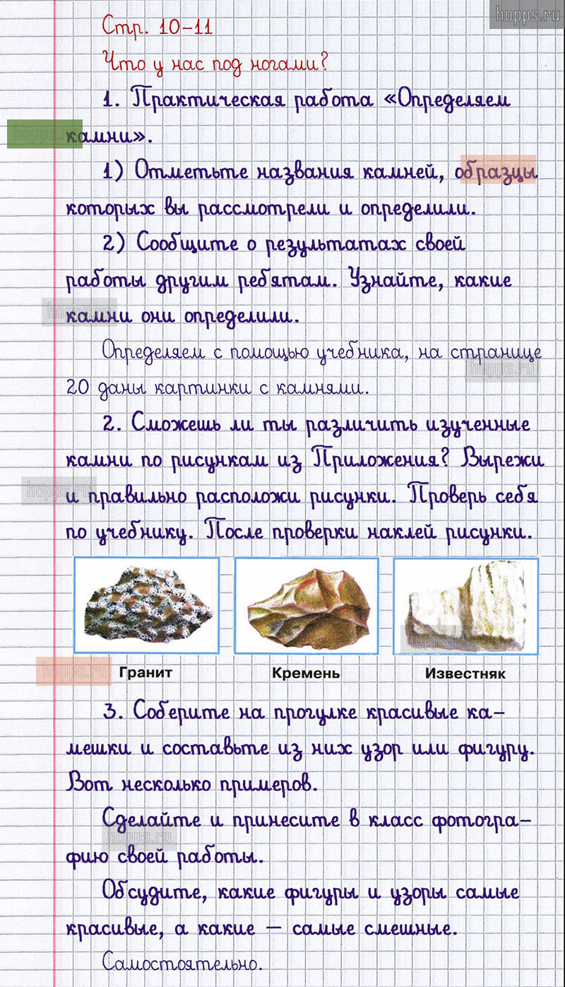 Подробные ответы к заданиям, расположенным на 10-11 странице 1 части рабочей тетради 2013 года по окружающему миру автора Плешаков А.А. для учащихся 1 класса.
