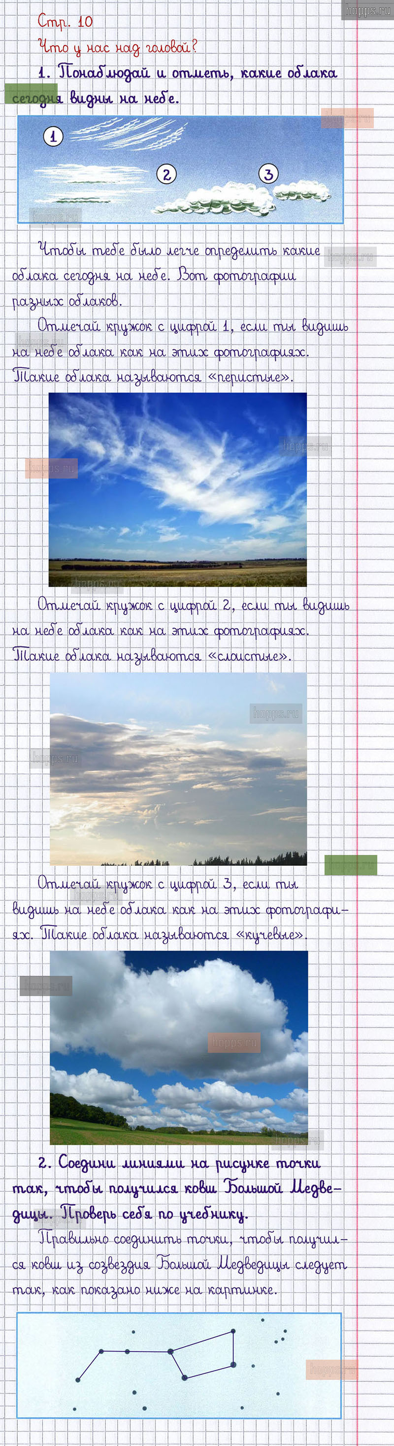 Подробные ответы к заданиям, расположенным на 10 странице 1 части рабочей тетради 2013 года по окружающему миру автора Плешаков А.А. для учащихся 1 класса.