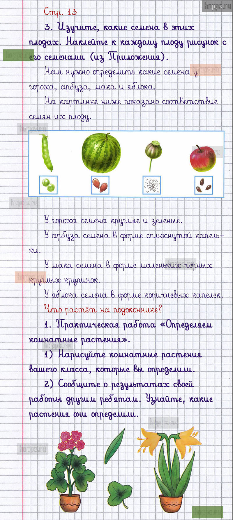 Подробные ответы к заданиям, расположенным на 13 странице 1 части рабочей тетради 2013 года по окружающему миру автора Плешаков А.А. для учащихся 1 класса.