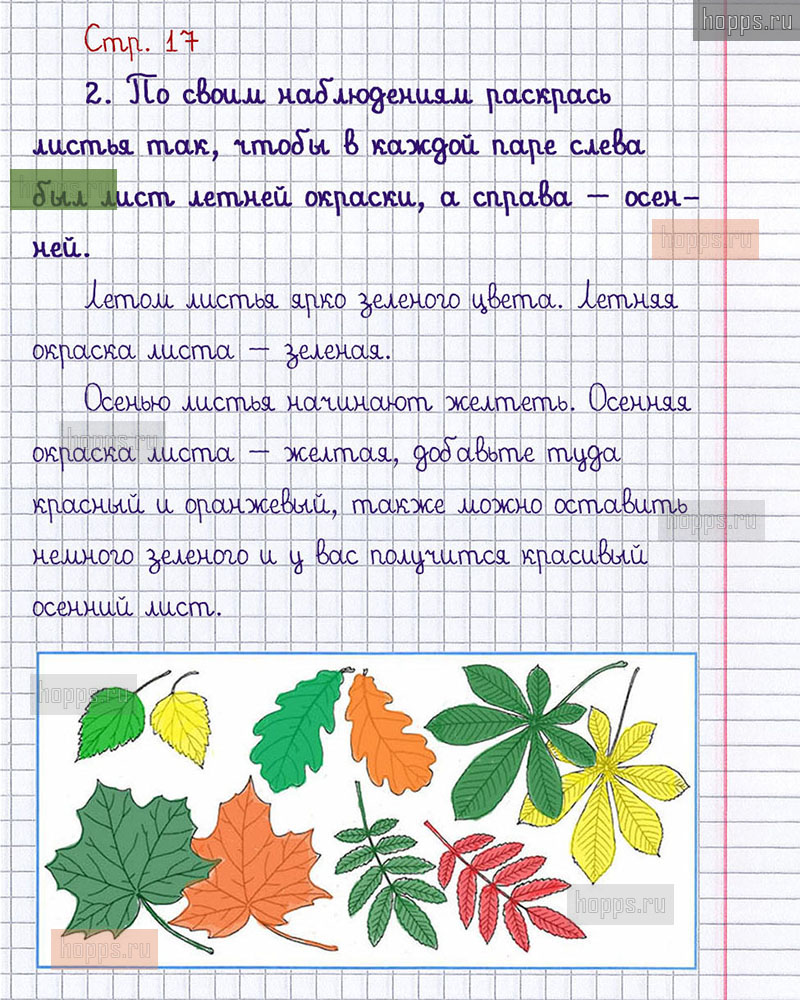 Подробные ответы к заданиям, расположенным на 17 странице 1 части рабочей тетради 2013 года по окружающему миру автора Плешаков А.А. для учащихся 1 класса.