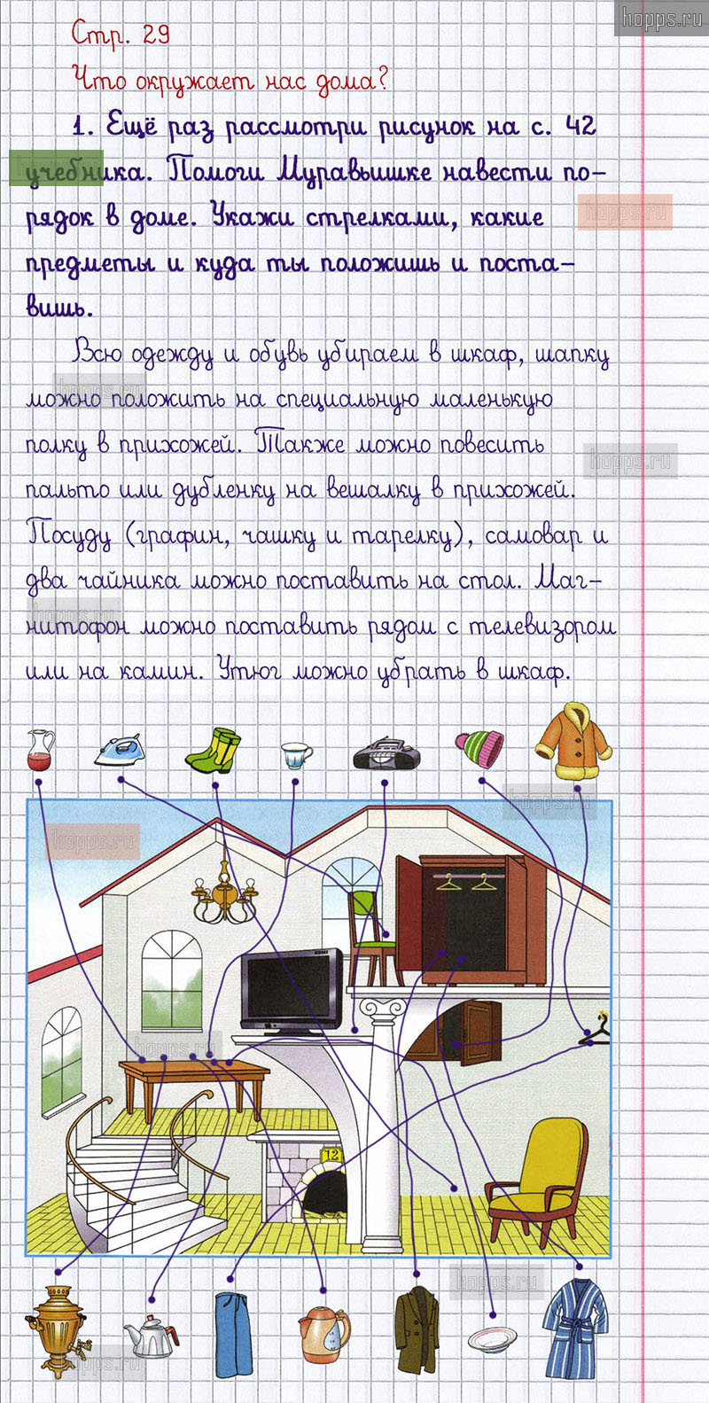 Подробные ответы к заданиям, расположенным на 29 странице 1 части рабочей тетради 2013 года по окружающему миру автора Плешаков А.А. для учащихся 1 класса.