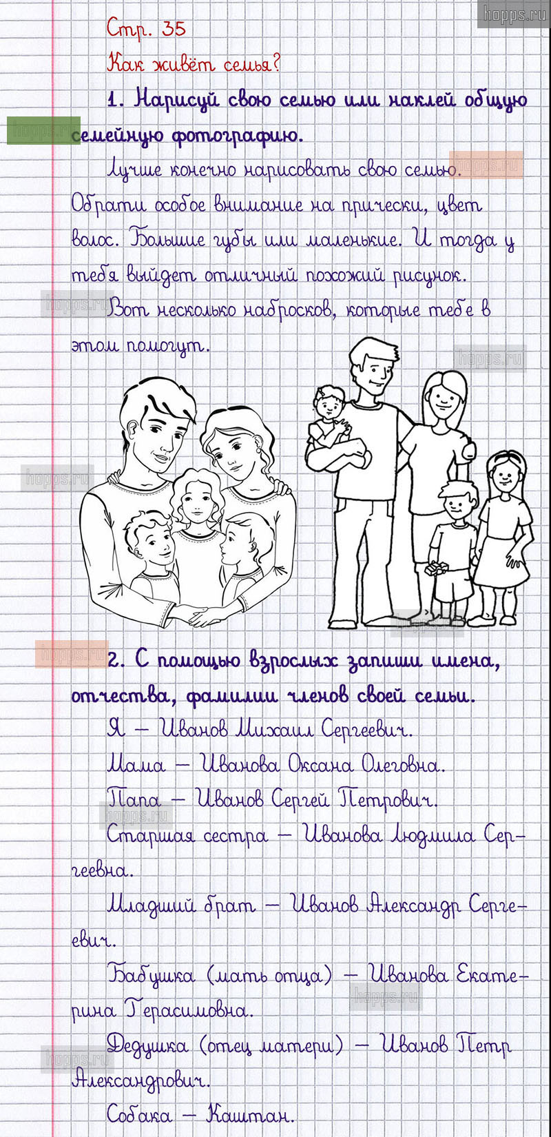 Подробные ответы к заданиям, расположенным на 35 странице 1 части рабочей тетради 2013 года по окружающему миру автора Плешаков А.А. для учащихся 1 класса.