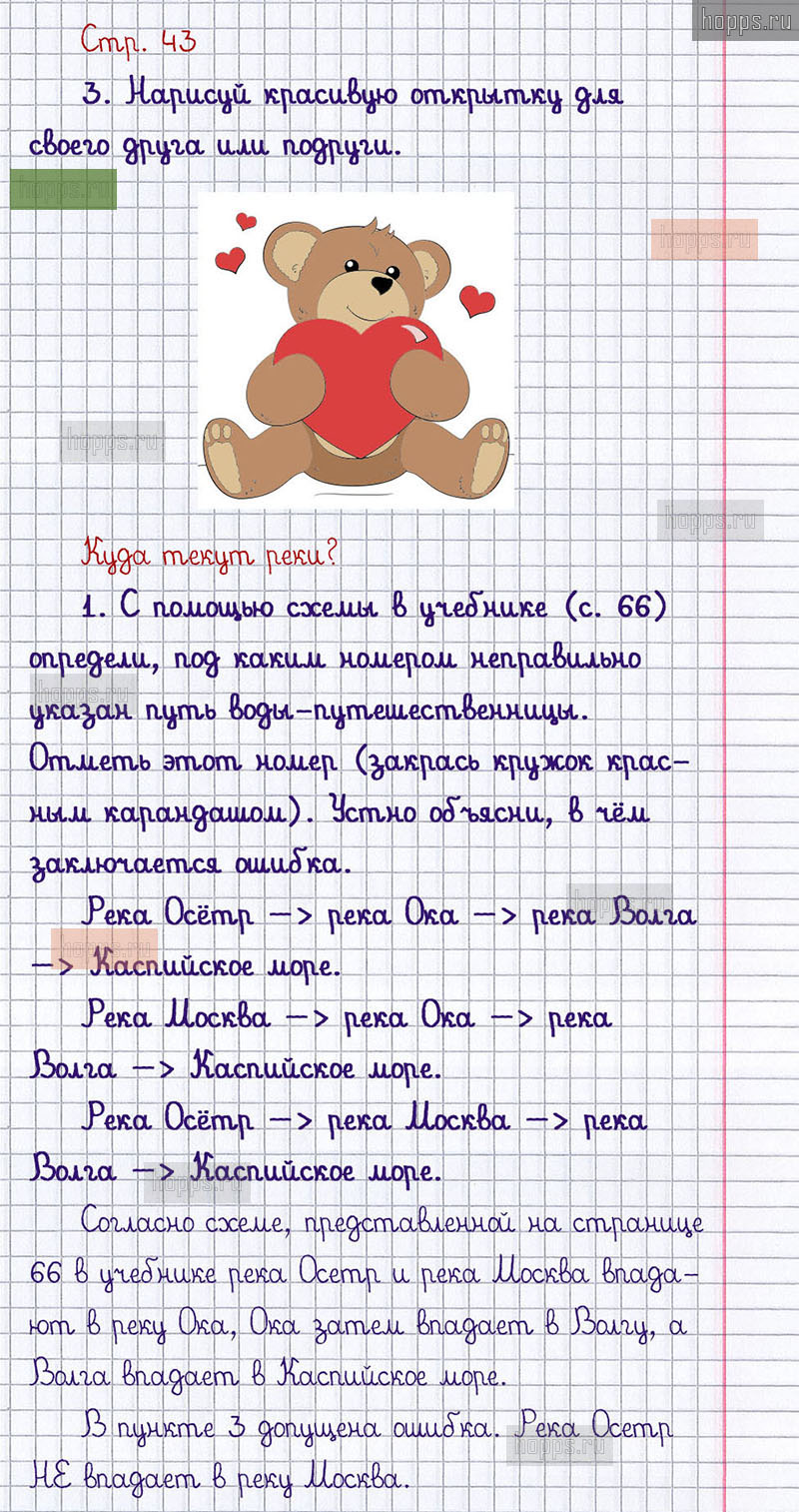 Подробные ответы к заданиям, расположенным на 43 странице 1 части рабочей тетради 2013 года по окружающему миру автора Плешаков А.А. для учащихся 1 класса.