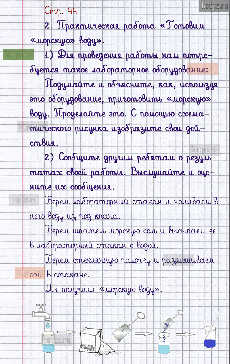 Подробные ответы к заданиям, расположенным на 44 странице 1 части рабочей тетради 2013 года по окружающему миру автора Плешаков А.А. для учащихся 1 класса.
