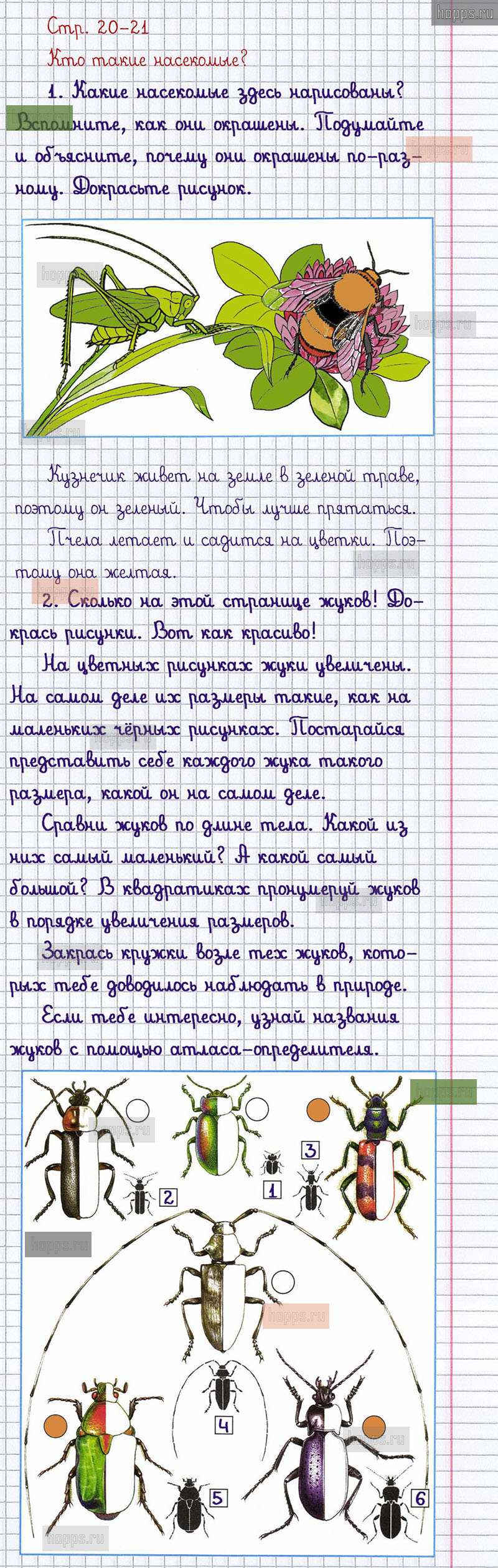 Подробные ответы к заданиям, расположенным на 20-21 странице 1 части рабочей тетради 2019 года по окружающему миру автора Плешаков А.А. для учащихся 1 класса.
