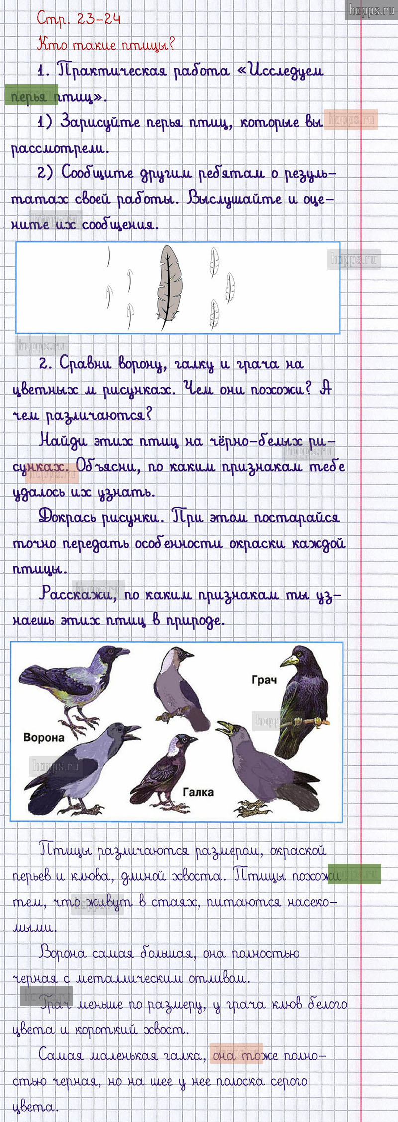 Подробные ответы к заданиям, расположенным на 23-24 странице 1 части рабочей тетради 2019 года по окружающему миру автора Плешаков А.А. для учащихся 1 класса.