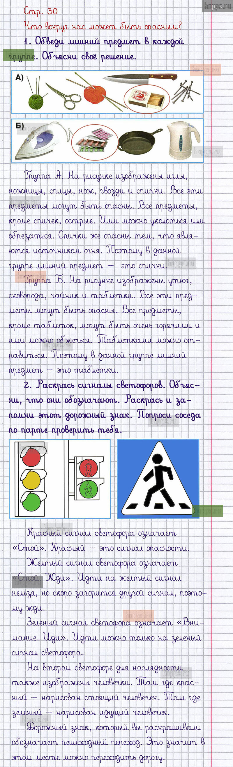 Подробные ответы к заданиям, расположенным на 30 странице 1 части рабочей тетради 2019 года по окружающему миру автора Плешаков А.А. для учащихся 1 класса.