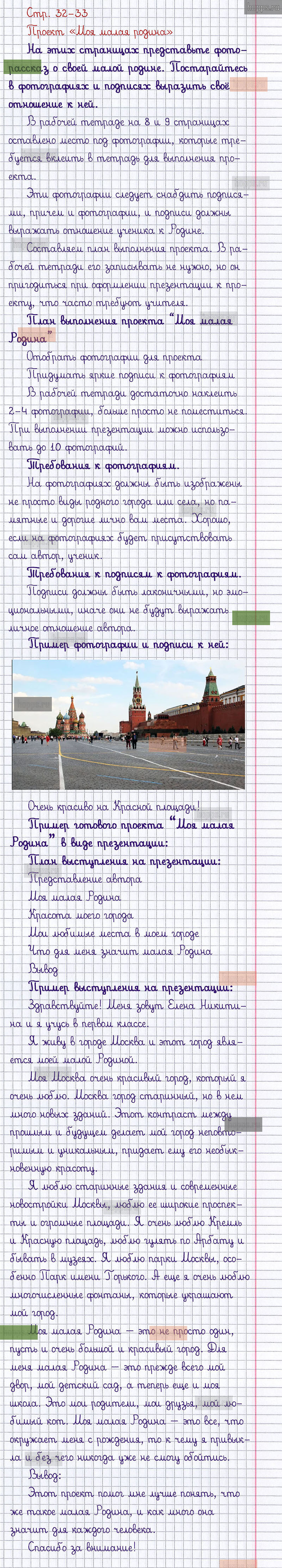 Подробные ответы к заданиям, расположенным на 32-33 странице 1 части рабочей тетради 2019 года по окружающему миру автора Плешаков А.А. для учащихся 1 класса.