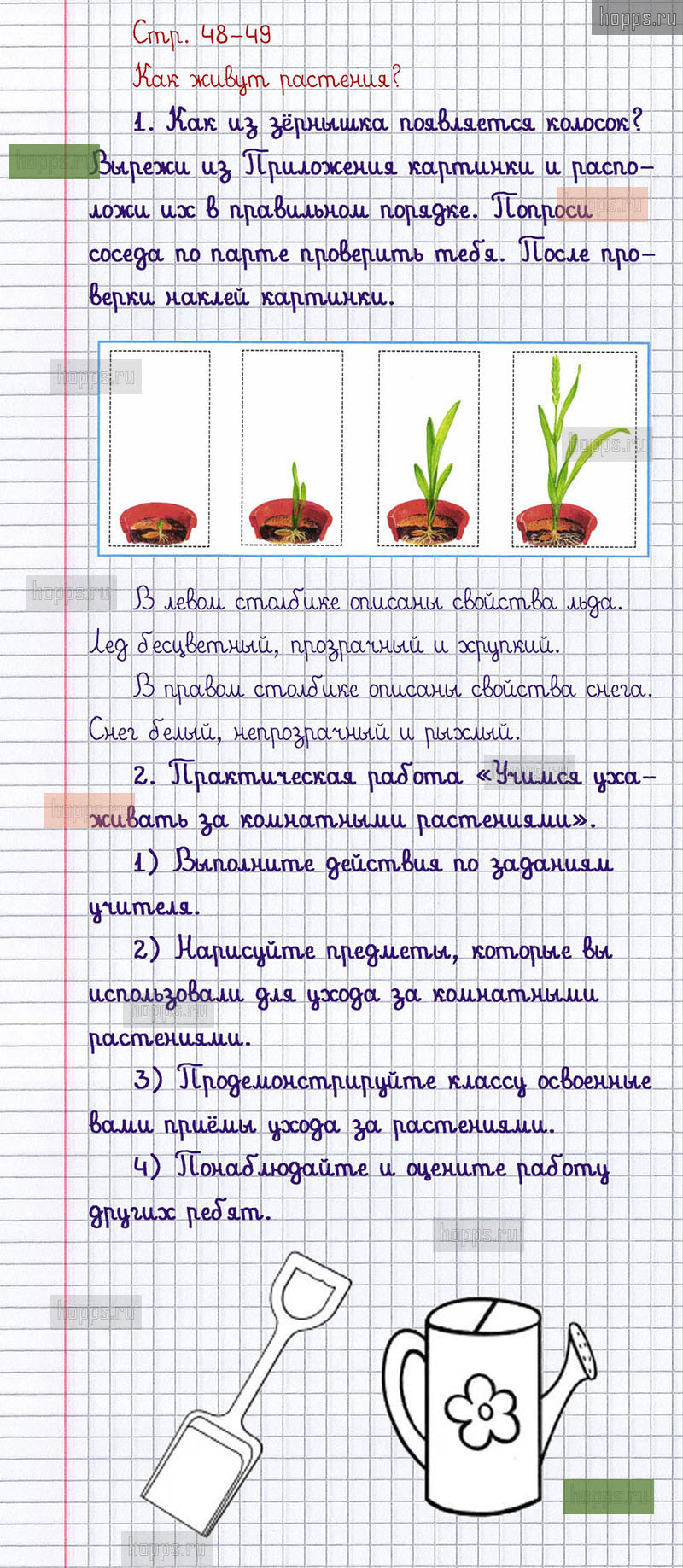 Подробные ответы к заданиям, расположенным на 48-49 странице 1 части рабочей тетради 2019 года по окружающему миру автора Плешаков А.А. для учащихся 1 класса.