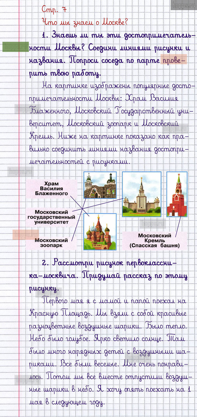Подробные ответы к заданиям, расположенным на 7 странице 1 части рабочей тетради 2019 года по окружающему миру автора Плешаков А.А. для учащихся 1 класса.