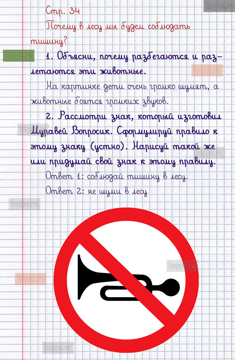 Подробные ответы к заданиям, расположенным на 34 странице 2 части рабочей тетради 2013 года по окружающему миру автора Плешаков А.А. для учащихся 1 класса.