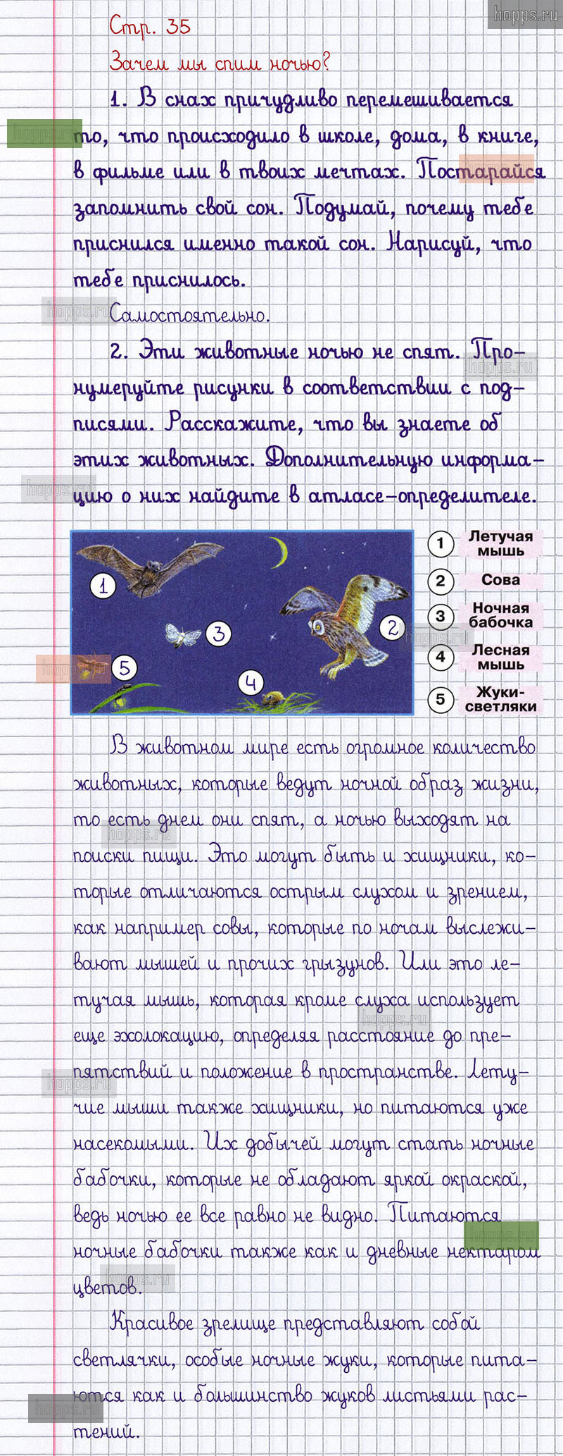 Подробные ответы к заданиям, расположенным на 35 странице 2 части рабочей тетради 2013 года по окружающему миру автора Плешаков А.А. для учащихся 1 класса.