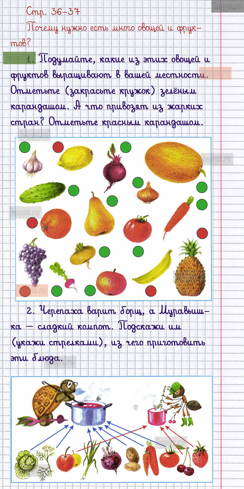 Подробные ответы к заданиям, расположенным на 36-37 странице 2 части рабочей тетради 2013 года по окружающему миру автора Плешаков А.А. для учащихся 1 класса.