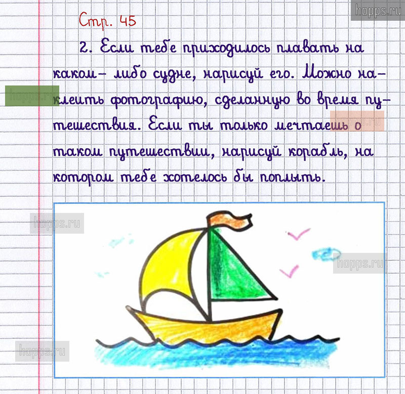 Подробные ответы к заданиям, расположенным на 45 странице 2 части рабочей тетради 2013 года по окружающему миру автора Плешаков А.А. для учащихся 1 класса.