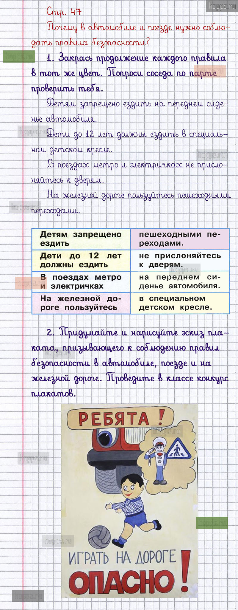 Подробные ответы к заданиям, расположенным на 47 странице 2 части рабочей тетради 2013 года по окружающему миру автора Плешаков А.А. для учащихся 1 класса.