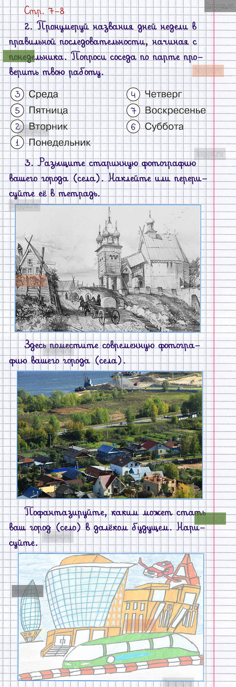Подробные ответы к заданиям, расположенным на 7-8 странице 2 части рабочей тетради 2013 года по окружающему миру автора Плешаков А.А. для учащихся 1 класса.