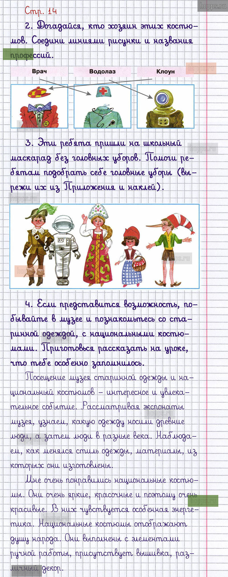 Подробные ответы к заданиям, расположенным на 14 странице 2 части рабочей тетради 2019 года по окружающему миру автора Плешаков А.А. для учащихся 1 класса.