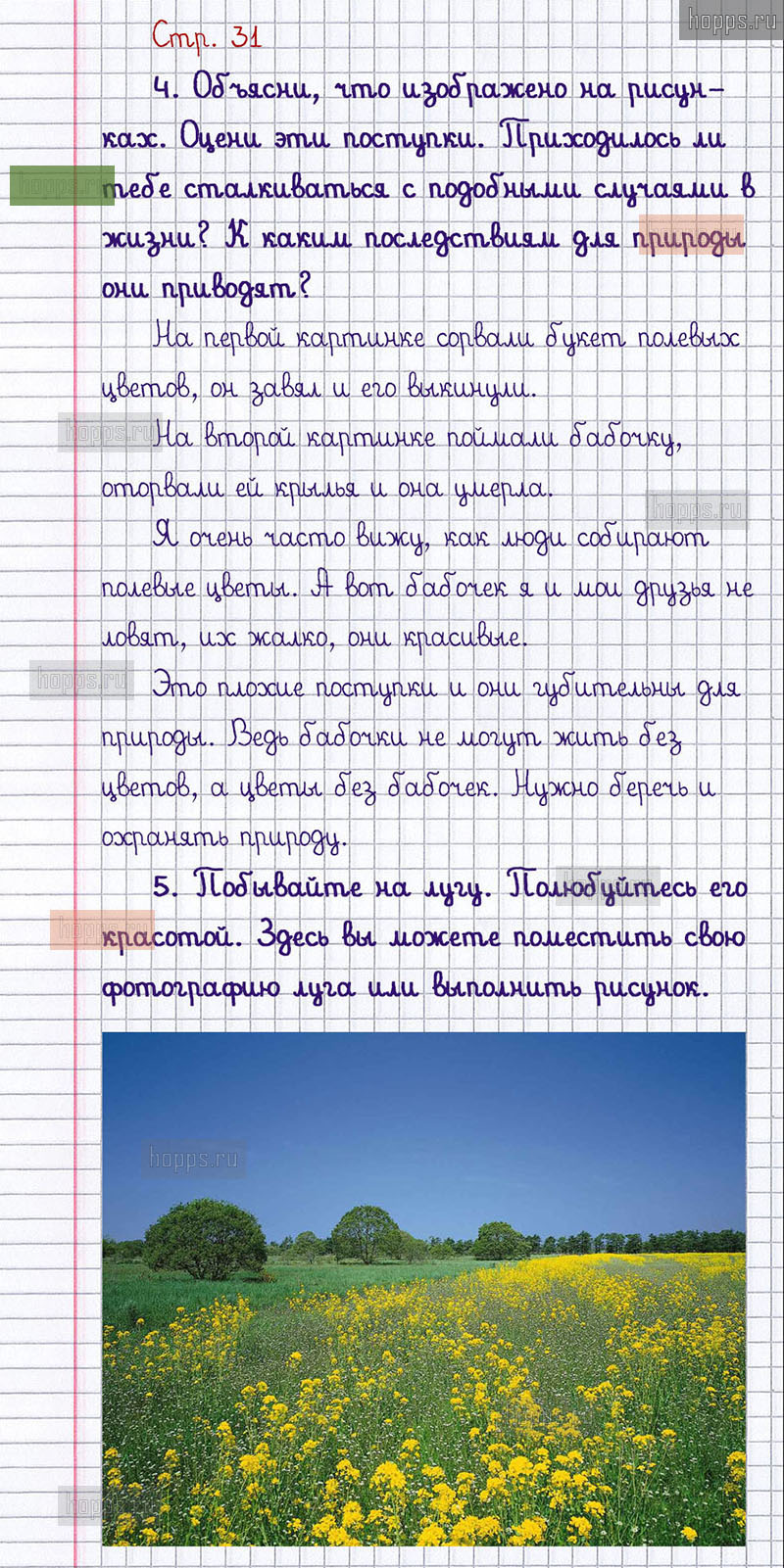 Подробные ответы к заданиям, расположенным на 31 странице 2 части рабочей тетради 2019 года по окружающему миру автора Плешаков А.А. для учащихся 1 класса.