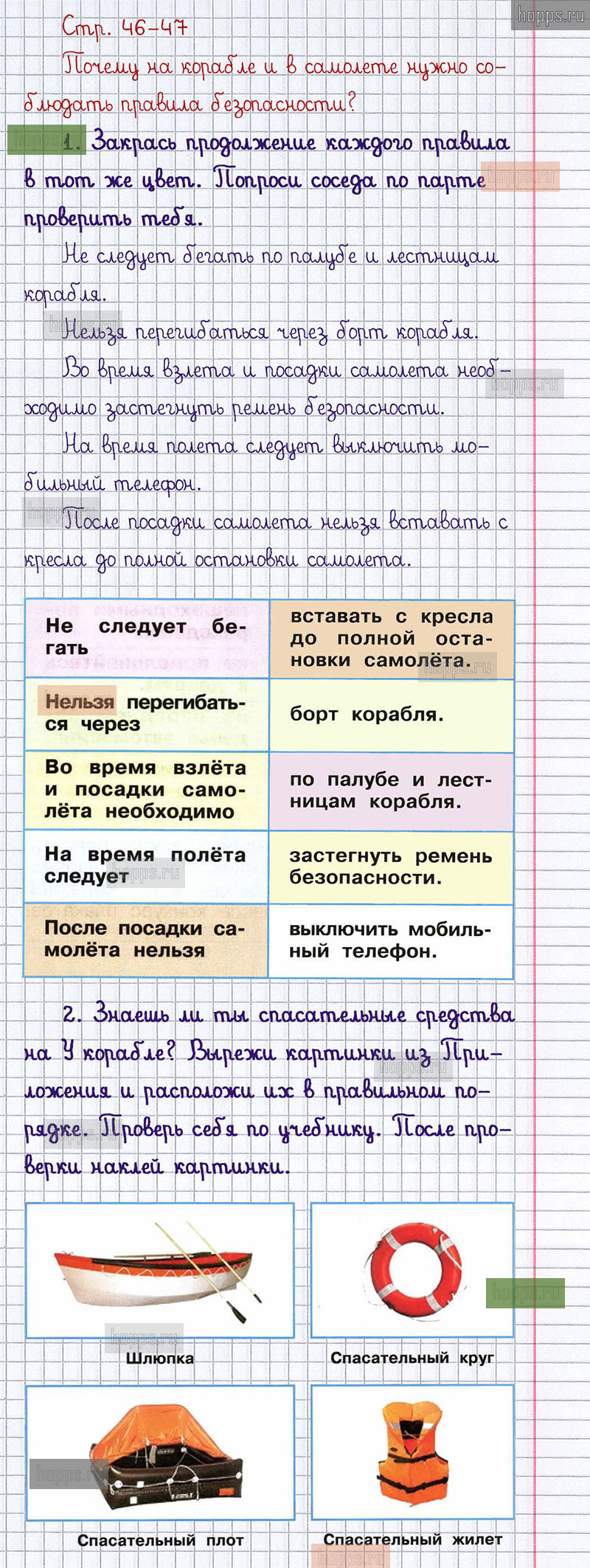 Подробные ответы к заданиям, расположенным на 46-47 странице 2 части рабочей тетради 2019 года по окружающему миру автора Плешаков А.А. для учащихся 1 класса.