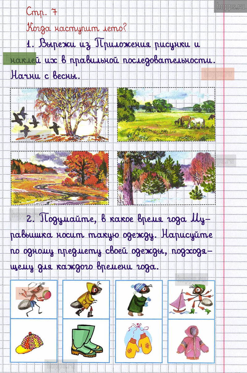Подробные ответы к заданиям, расположенным на 7 странице 2 части рабочей тетради 2019 года по окружающему миру автора Плешаков А.А. для учащихся 1 класса.