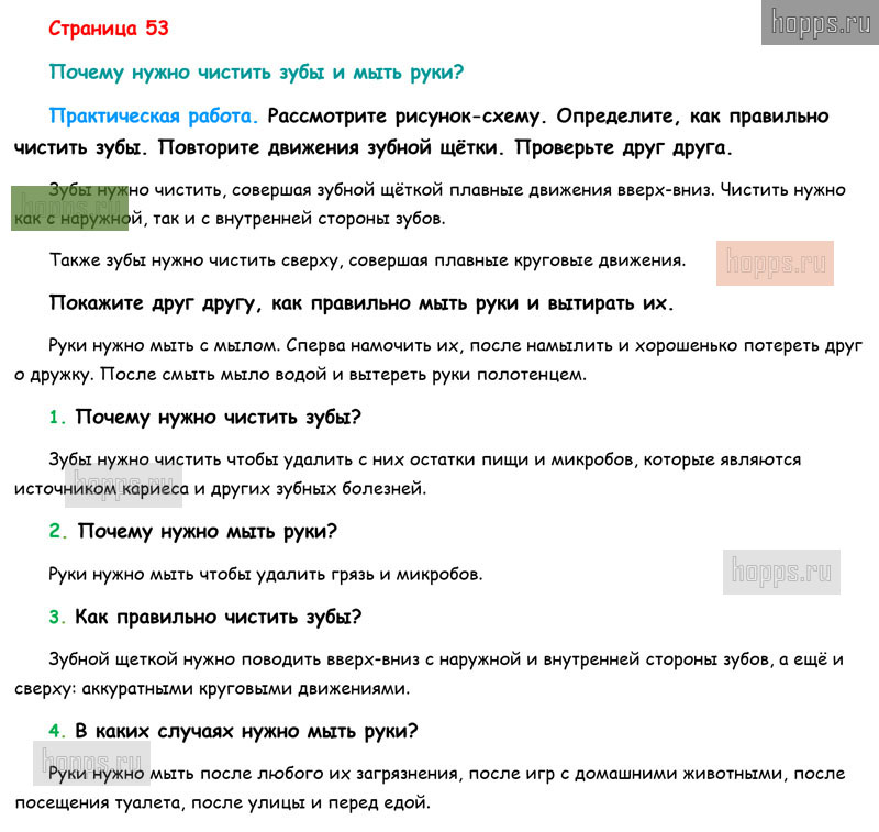 Готовые ответы к вопросам и заданиям на 53 странице 2 части учебника по окружающему миру для учащихся 1 класса, автора Плешаков А.А, Перспектива, 2019 г.