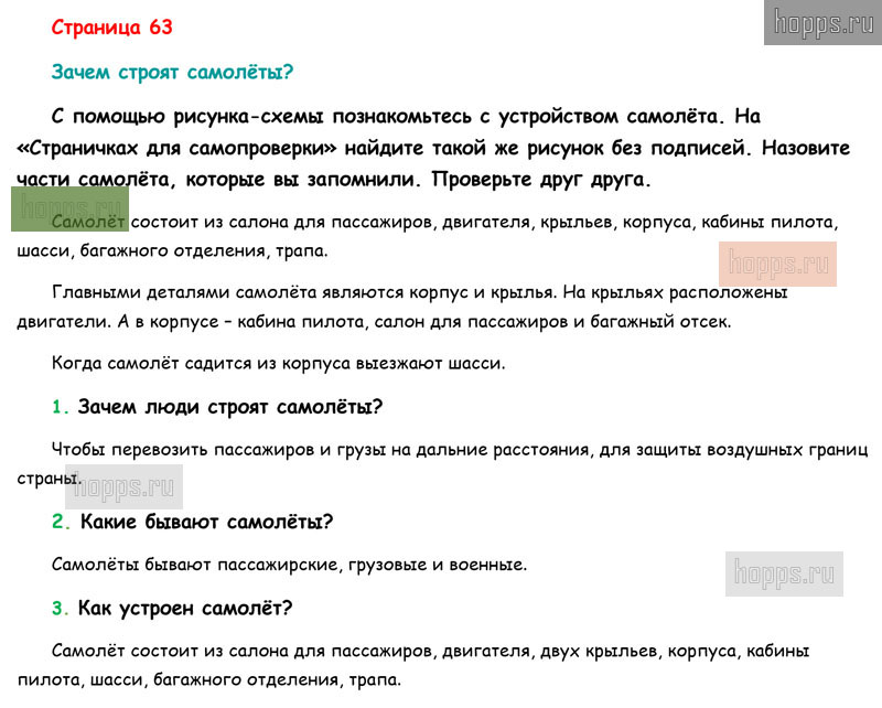 Готовые ответы к вопросам и заданиям на 63 странице 2 части учебника по окружающему миру для учащихся 1 класса, автора Плешаков А.А, Перспектива, 2019 г.
