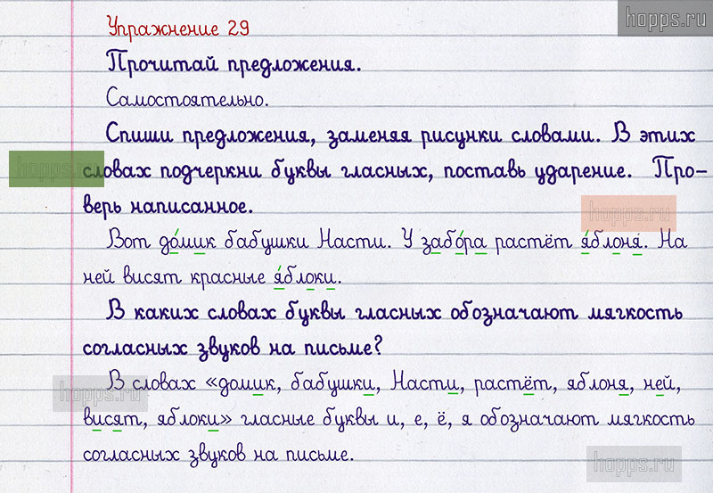 Подробные ответы к 29 заданию учебника по русскому языку авторов Р.Н. Бунеев, Е.В. Бунеева, О.В. Пронина для учащихся 1 класса. §3. Повторяем способы обозначения мягкости согласных звуков на письме.