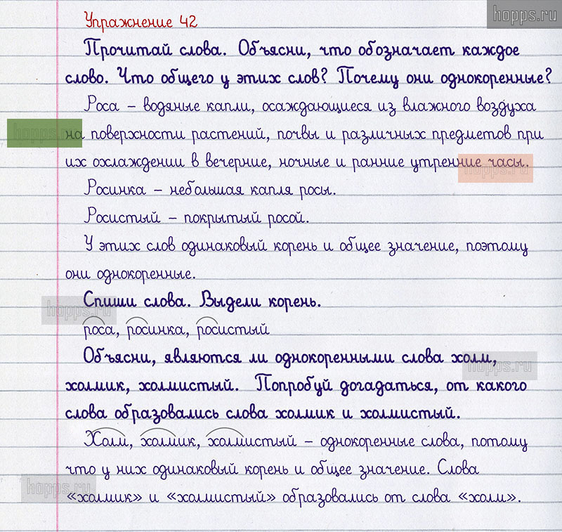 Подробные ответы к 42 заданию учебника по русскому языку авторов Р.Н. Бунеев, Е.В. Бунеева, О.В. Пронина для учащихся 1 класса. §6. Повторяем корень слова.