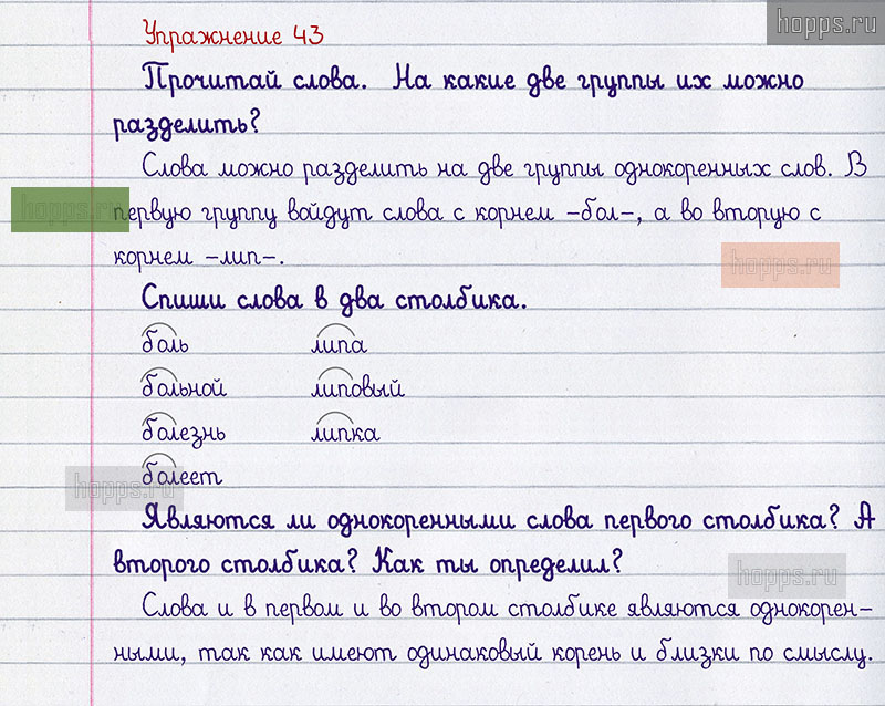 Подробные ответы к 43 заданию учебника по русскому языку авторов Р.Н. Бунеев, Е.В. Бунеева, О.В. Пронина для учащихся 1 класса. §6. Повторяем корень слова.