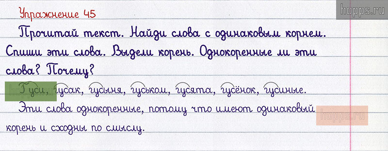 Подробные ответы к 45 заданию учебника по русскому языку авторов Р.Н. Бунеев, Е.В. Бунеева, О.В. Пронина для учащихся 1 класса. §6. Повторяем корень слова.