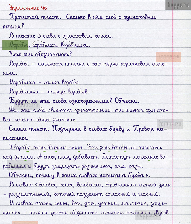 Подробные ответы к 46 заданию учебника по русскому языку авторов Р.Н. Бунеев, Е.В. Бунеева, О.В. Пронина для учащихся 1 класса. §6. Повторяем корень слова.