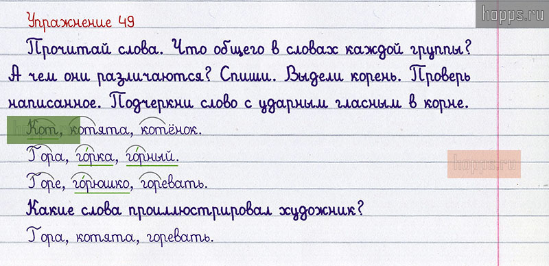 Подробные ответы к 49 заданию учебника по русскому языку авторов Р.Н. Бунеев, Е.В. Бунеева, О.В. Пронина для учащихся 1 класса. §7. Повторяем правописание букв безударных гласных в корне слова.