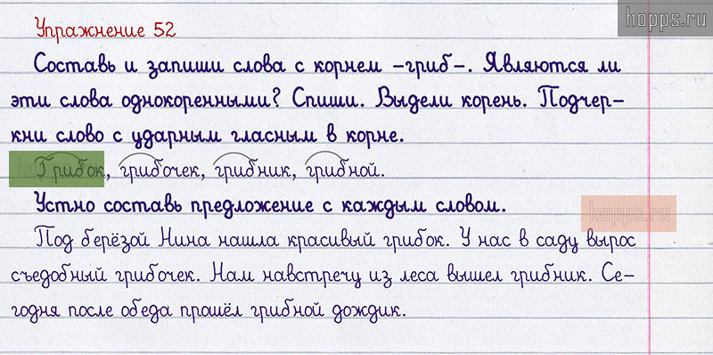 Подробные ответы к 52 заданию учебника по русскому языку авторов Р.Н. Бунеев, Е.В. Бунеева, О.В. Пронина для учащихся 1 класса. §7. Повторяем правописание букв безударных гласных в корне слова.