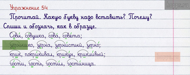 Подробные ответы к 54 заданию учебника по русскому языку авторов Р.Н. Бунеев, Е.В. Бунеева, О.В. Пронина для учащихся 1 класса. §7. Повторяем правописание букв безударных гласных в корне слова.