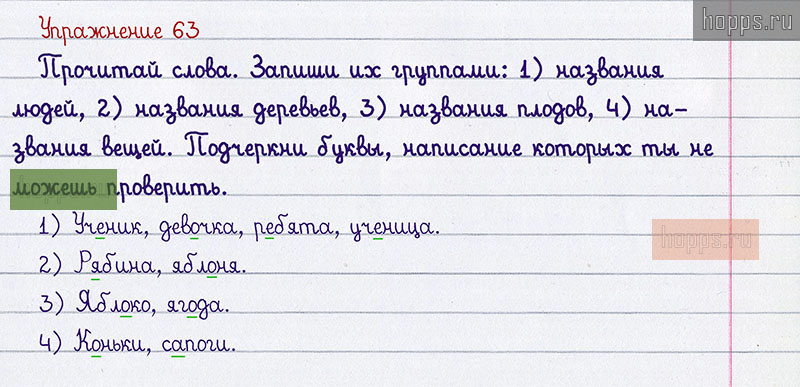 Подробные ответы к 63 заданию учебника по русскому языку авторов Р.Н. Бунеев, Е.В. Бунеева, О.В. Пронина для учащихся 1 класса. §8. Повторяем словарные слова.