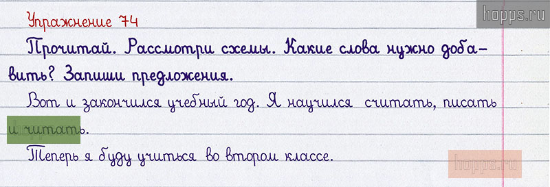 Подробные ответы к 74 заданию учебника по русскому языку авторов Р.Н. Бунеев, Е.В. Бунеева, О.В. Пронина для учащихся 1 класса. §9. Повторяем предлоги и предложение.